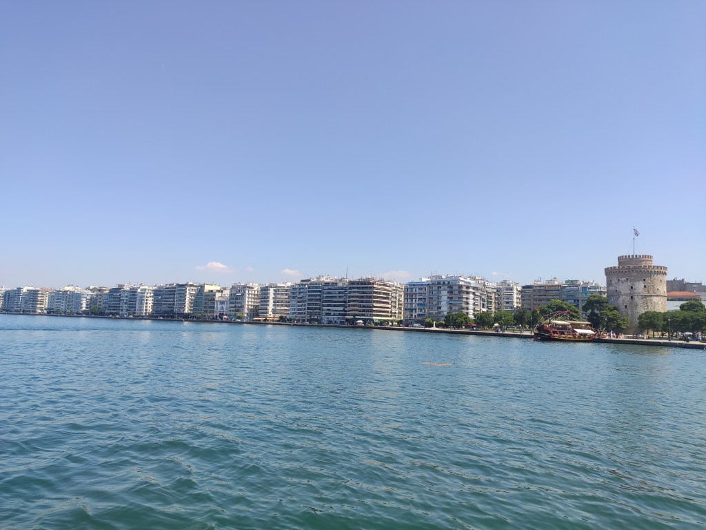 Serbest zamandaki ilk durağımız Kanuni Sultan Süleyman tarafından 15. yüzyılda inşa ettirilen Selanik’in simgelerinden Beyaz Kule ve çevresi oldu. Kuleyi gezmeden önce arka tarafındaki tur tekneleri ilgimizi çekti, onlardan fiyat aldık. Alkollü/alkolsüz bir içecek dahil yarım saatlik tekne turu için kişi başı fiyatı 5€ idi. Hava ısınmaya başlamıştı o nedenle bir mola olur diye düşünerek tur teknesine bindik. Yarım saat süren bu turla Selanik ve çevresini denizden görmüş olduk. Şehrin İzmir’e ne kadar benzediğini fark ettiğimiz ilk an teknede yaşandı. Fiyat/performans açısından makul bir gezi oldu 🙂